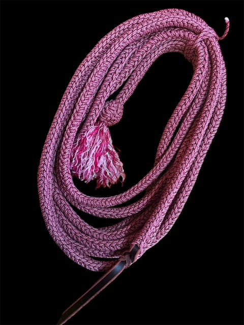 This beautiful Mecate is 22 feet 8 strands.Diameter is around 1/2″ . Hand braided by Jolly.