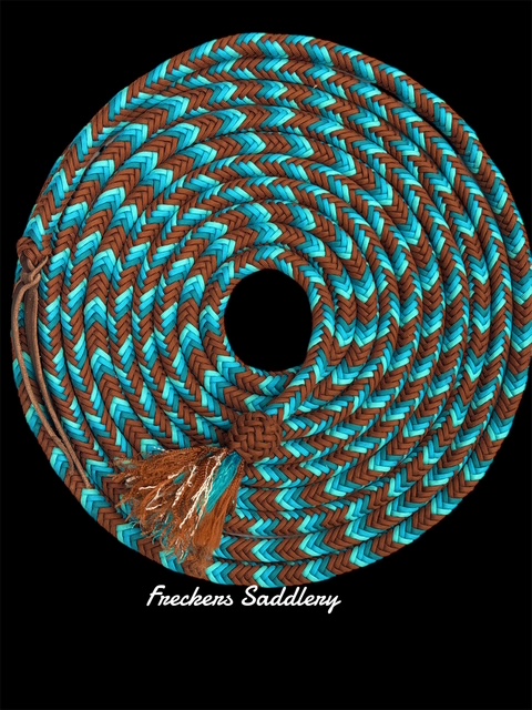 This beautiful Mecate is 22 feet 12 strands.Diameter is around 5/8″ – 3/4″ . Hand braided by Jolly.