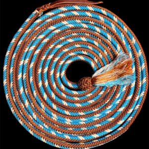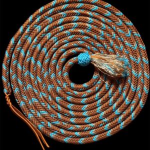 This beautiful Mecate is 22 feet 12 strands.Diameter is around 5/8″ – 3/4″ . Hand braided by Jolly.