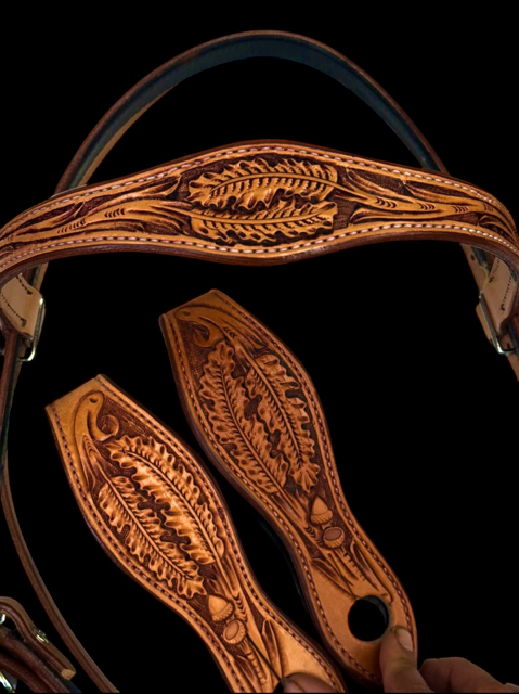 Oak Leaf Tooling Browband Headstall Set Antiqued