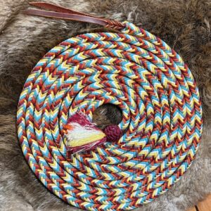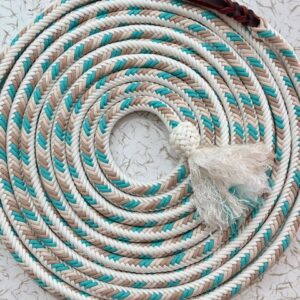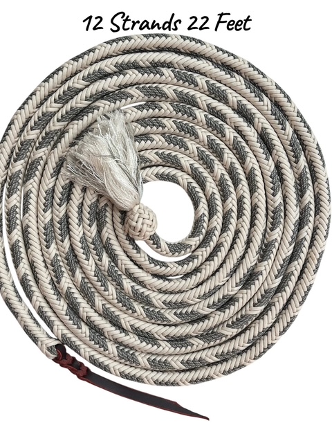 This beautiful Mecate is 22 feet and 12 strands and about 5/5″-3/4″ diameter.